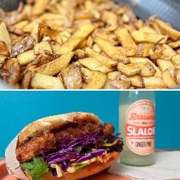 Servis avec frites fraîches maison et boisson